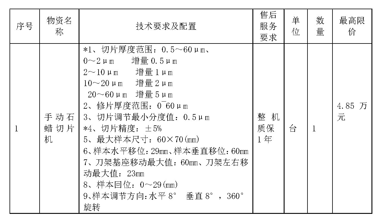 一、项目名称:沈阳农业大学林学院手动石蜡切片机设备询价采购项目