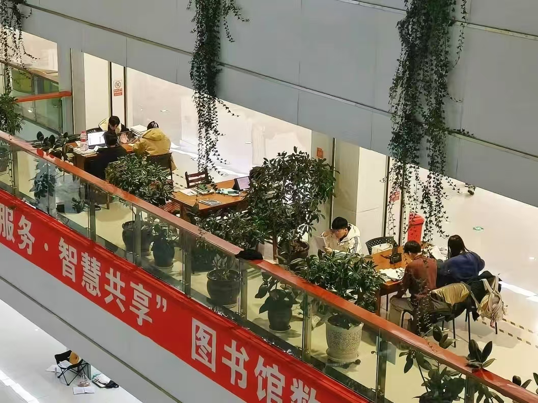 你们的身影遍布图书馆的每一个角落。在楼梯间,你们或坐或立,手中的书页微微泛黄,边缘已略显磨损,这是你们无数次翻阅、刻苦钻研的见证。你们的眼神专注而深邃,仿佛能穿透文字,直抵知识的核心。偶尔抬头望向窗外,眼中闪烁着对未来的无限憧憬与渴望,那是对梦想的执着追求与坚定信念。