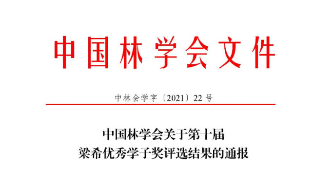 日前,中国林学会发布关于第十届梁希优秀学子奖评学结果的通报,沈阳农业大学林学院2018级林木遗传育种专业秦柏婷同学获评梁希优秀学子奖。