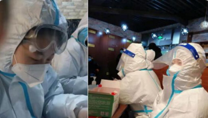 采集填写信息汇总,并协助医生,为核实过信息的居民做核算采集工作,并为采集过的试剂瓶标签,是她做的最多的工作。在进行完核算采集的其他时间,她则到小区门口的相关卡口协助做好扫码、测温、登记等秩序维护工作;在人员密集场所进行劝说,避免人群集聚;协助社区开展服务及宣传。