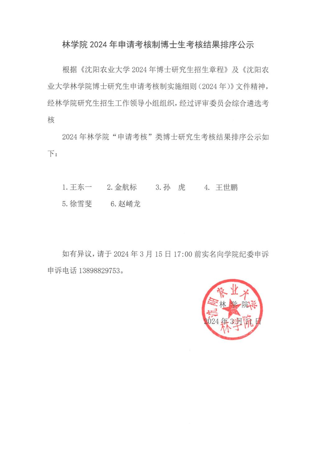 林学院2024年拟进入学科初选申请考核制博士研究生名单公示