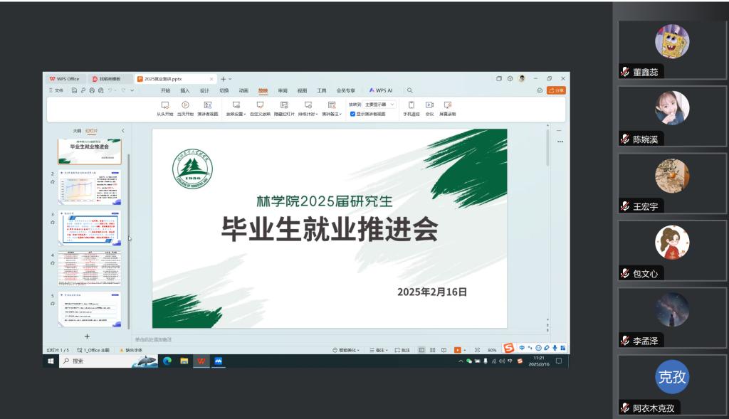 为进一步强化就业指导工作,帮助2025届毕业生了解当前就业形势,把握就业机会,提升求职技巧,林学院于2月16日举办2025届毕业生线上就业推进会,研究生辅导员任亚敏老师出席会议。本次会议共邀请四位优秀的往届毕业生为大家分享求职技巧和经验。