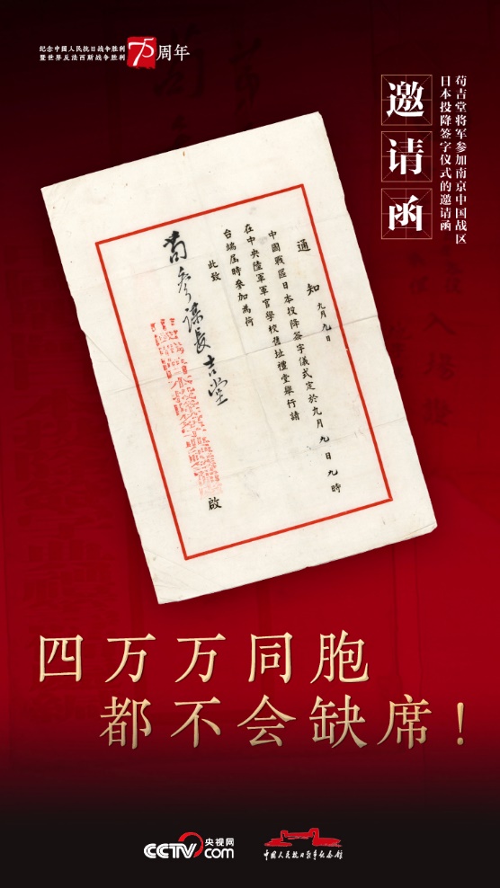 194599日,苟吉堂将军参加南京中国战区日本投降签字仪式的邀请函