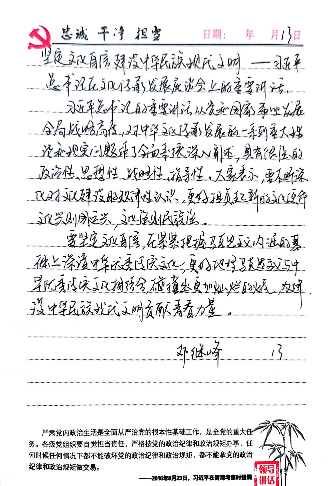 此次的学习让我深思环境与经济之间的平衡与融合,在寻求发展的同时更要追求人与自然和谐共生。生态兴则国家兴,作为一名林学研究生,我们更要深切学习领会习近平总书记关于生态文明建设所必须坚持的原则,以绿色发展的理念为指引,锻炼自身专业本领,努力将所学的专业知识运用到实践当中,为我国的生态文明建设作出贡献。
