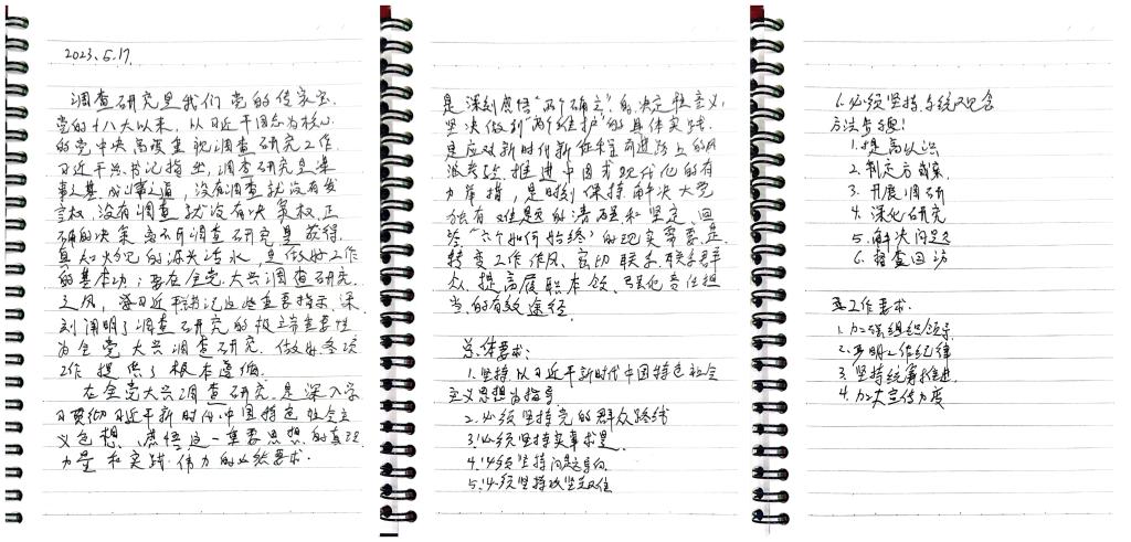 重视调研是我党一贯坚持的工作作风,从这一点上来说,调查研究不是我们的工作任务而是工作手段。正如李强总理所说,“坐在办公室碰到的都是问题,下去调研看到的都是办法”。圣人无常师,作为一名研究生,我们要向网络上的海量资源学习,向广大的人民群众学习。我们在科研中,要倾听每一位专业教师的建议,要虚心接受每一位同门的质疑,这样才能让我们有与时俱进的思路,在以后的科研工作中迎难而上,砥砺前行。