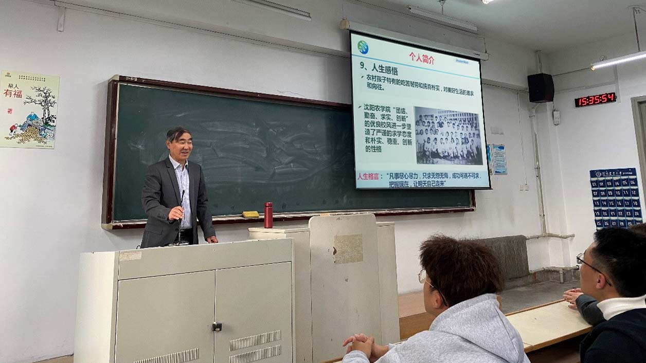 第一教学楼北区211教室15:30准时上课,何兴元校友首先讲述了自己从志愿选择报考沈农林学专业,到以优异成绩毕业分配到中国科学院从事科学研究及管理工作的40年成长历程,展现了“一个农村孩子”特有的吃苦耐劳和纯真朴实,以及对美好生活的向往与追求过程,感恩母校“团结、勤奋、求实、创新”的优良校风塑造自己形成了“严谨、朴实、稳重、创新”的性格、作风。