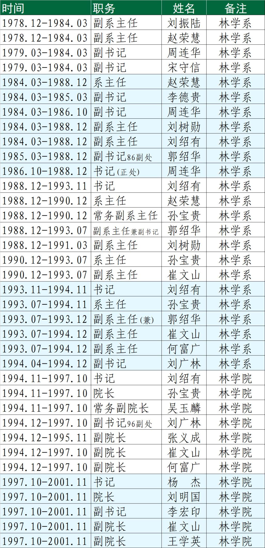 党委书记、副院长 杨宇:主持学院党委全面工作;负责党建、学院工会、宣传工作;负责学院的党风廉政建设、意识形态工作、安全稳定工作、思想政治工作和党的建设五个“一岗双责”工作。 院长 王玉成:主持学院行政全面工作;负责学科工作、团队建设工作、人才和师资队建设工作;负责学院的廉政建设、意识形态工作、安全稳定工作、思想政治工作“一岗双责”工作。 党委副书记、纪委书记、副院长 杜杰:负责学院纪委工作、学生管理工作;负责分管领域的党风廉政建设、意识形态工作、安全稳定工作、思想政治工作和党的建设五个“一岗双责”工作。 院党委委员、副院长 张智:负责学院科研管理、校属植物园、科研平台基地、国有资产与实验室管理、网站建设与运维工作;负责分管领域的党风廉政建设、意识形态工作、安全稳定工作、思想政治工作和党的建设五个“一岗双责”工作。 院党委委员、副院长 刘平:负责学院研究生教育管理、外事(学术活动、院际交流)、实验林场管理工作;负责分管领域的党风廉政建设、意识形态工作、安全稳定工作、思想政治工作和党的建设五个“一岗双责”工作。 院党委委员、副院长 高慧淋:负责本科教学管理、大学生创新创业教育、中外合作办学与本科教育交流工作;负责分管领域的党风廉政建设、意识形态工作、安全稳定工作、思想政治工作和党的建设五个“一岗双责”工作。